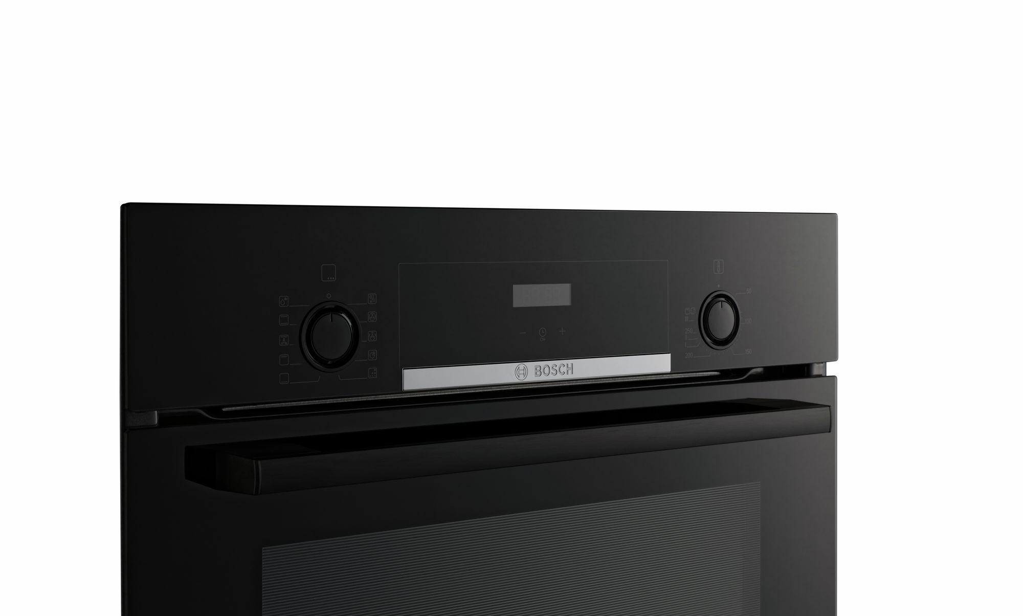 Чтобы не тратить много времени на чистку духовки от жировых отложений, все внутренние панели в Бош HBF554YB0R изготовлены из пористой многослойной керамики EcoClean. Она впитывает в себя жир, а затем при нагревании расщепляет его на экологически безопасные составляющие – уголь и воду. Таким образом, поверхность самоочищается без вашего участия сразу же во время работы устройства.