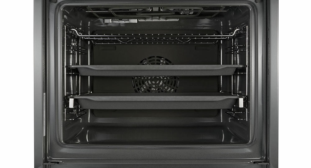 Уникальное пористое покрытие EcoClean непрерывно расщепляет жир на углекислый газ и воду при каждом использовании духовки. Телескопические системы выдвижения противней обеспечивают удобный и безопасный доступ к блюдам. Одинаково безупречный результат достигается на всех трех уровнях благодаря равномерному распределению жара на режиме «3D горячий воздух».
