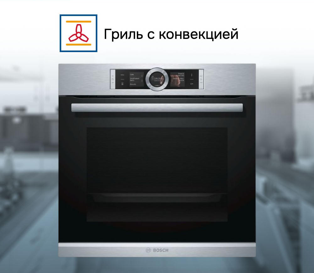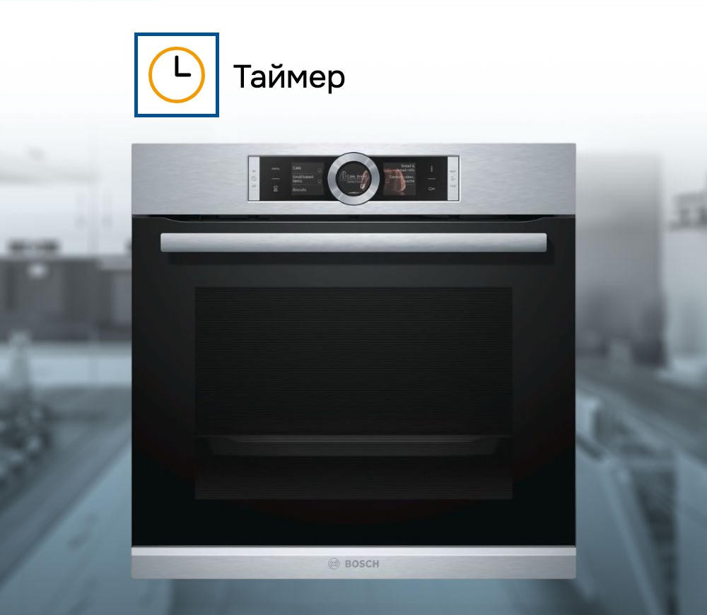 Духовой шкаф Bosch HBG6764S1 — это электрическая независимая модель из линейки Serie | 8. Ее внутренний объем составляет 71 литр, благодаря чему есть возможность запекать большие блюда. Она оформлена в цвете «нержавеющая сталь», благодаря чему отлично впишется в любой современный кухонный интерьер — например, в стиле хай-тек. Управление осуществляется посредством использования сенсорных кнопок и Control Ring. Благодаря многофункциональным часам Easy Clock можно с легкостью отслеживать время до окончания работы одной из программ.
