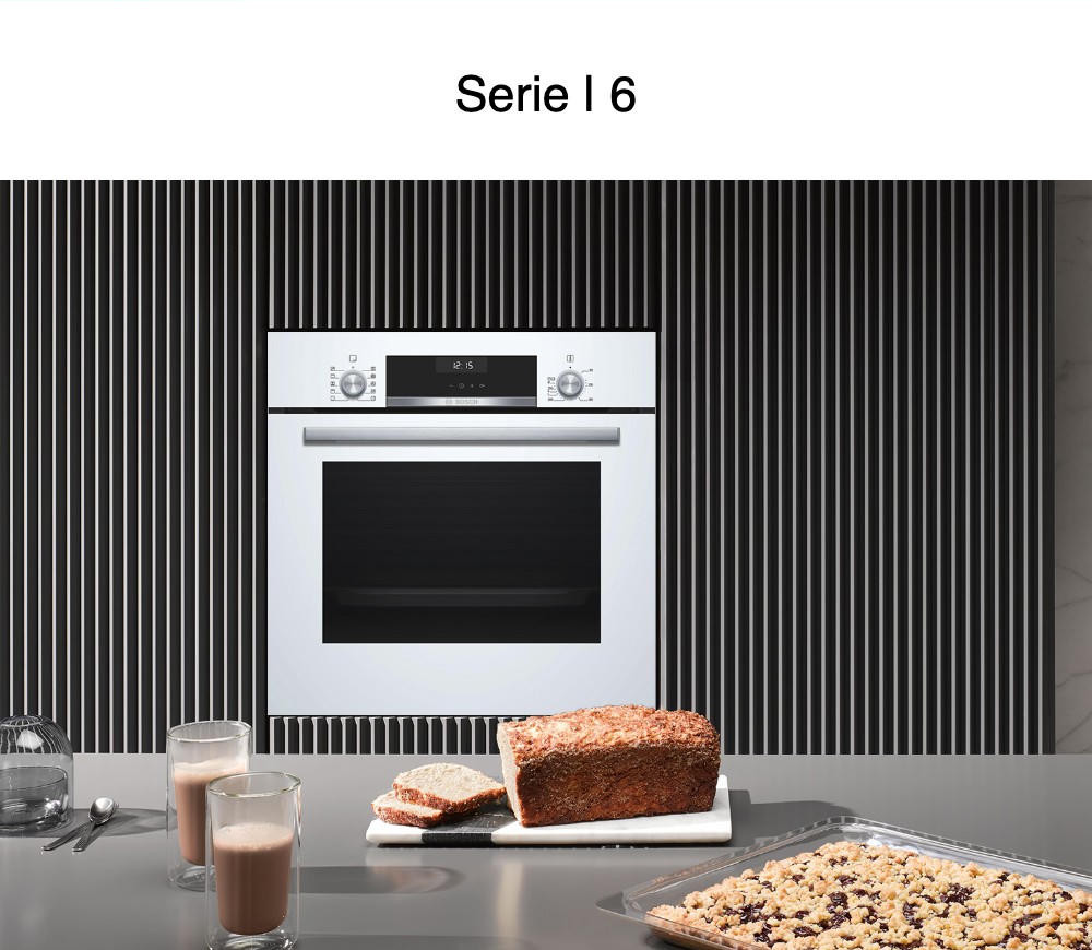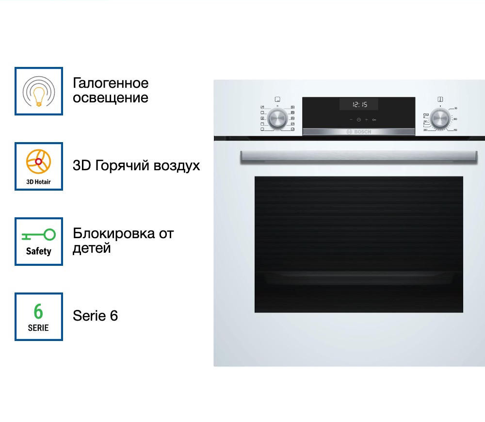 Духовой шкаф Bosch HBJ558YW0Q оснащен 8 режимами нагрева, среди которых — гриль, конвекция и размораживание. В камере предусмотрено пять уровней установки противней, на двух из них установлены телескопические направляющие. Наружное стекло нагревается не более чем до 40_С. В комплект входит комбинированная решётка и два противня (эмалированный и универсальный, противень для гриля).
