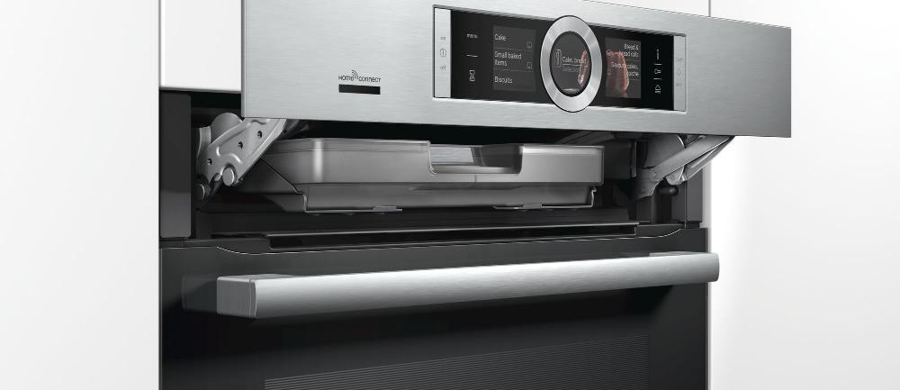 Компактный паровой духовой шкаф Bosch CSG656RS7 выполнен в цвете нержавеющей стали. Имеет 14 режимов нагрева, среди которых — гриль, конвекция, сушка и размораживание. На одном из трёх уровней установки противней предусмотрены телескопические направляющие со Stop-функцией и полным выдвижением. Дверца имеет три стекла и оснащена амортизатором SoftClose, который обеспечивает ей плавное закрытие. Наружное стекло нагревается не более чем до 40_С, что сводит к минимуму риск ожогов во время работы духового шкафа.
