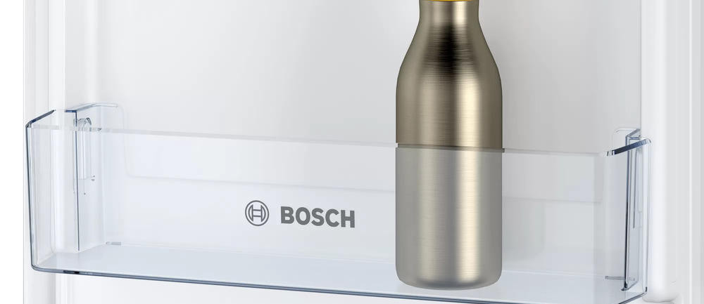 Встраиваемый двухкамерный холодильник Bosch KIN86NSF0 оснащен светодиодным освещением, не создает бликов, а также не требует постоянного замена. Контейнер Multi Box XXL позволяет вмести целый арбуз. Технология FreshSense сохраняет приятный климат для продуктов, не делая их слишком мягким или твёрдыми.