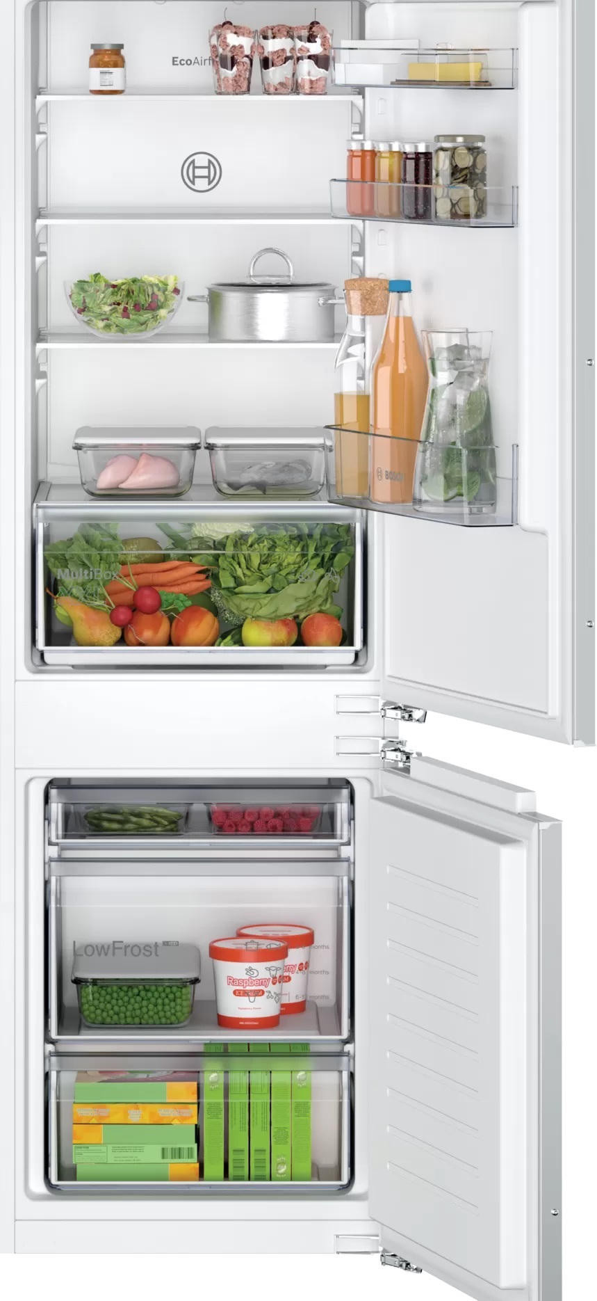 Встраиваемый холодильник Bosch KIV 86 NFF0 оснащен системой EcoAirflow — оптимальная циркуляция воздуха и постоянная температура охлаждения. Ящик Big Box: идеально подходит для размещения морозильных ящиков или крупных замороженных товаров. Светодиодное освещение потребляет меньше энергии, чем обычное освещение холодильника и прослужит в течение всего жизненного цикла устройства.