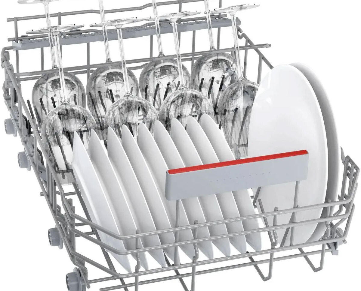 Посудомоечная машина Bosch SPS4HMI49E оснащена функцией IntensiveZone для интенсивной очистки сложно отмываемой посуды, а также функцией SpeedPerfectPlus для ускоренного мытья. Кроме того, в машине предусмотрена программа Machine Care для ухода за самим устройством. Дополнительное полоскание гарантирует идеальную чистоту и блеск посуды после каждого цикла мытья. Управление машиной осуществляется через открытую панель с кнопками и дисплеем. С помощью функции Home Connect можно запустить машину дистанционно через приложение на смартфоне. Также в наличии индикаторы наличия ополаскивателя и соли, а также таймер отсрочки запуска от 1 до 24 часов. Внутри машины три корзины для размещения посуды, верхний из которых можно переставить по высоте. В нижнем коробе предусмотрены две полки для чашек и две складные направляющие для тарелок. Система AquaStop и полная защита от протечек обеспечивают безопасность использования, а блокировка от детей предотвращает случайный запуск.