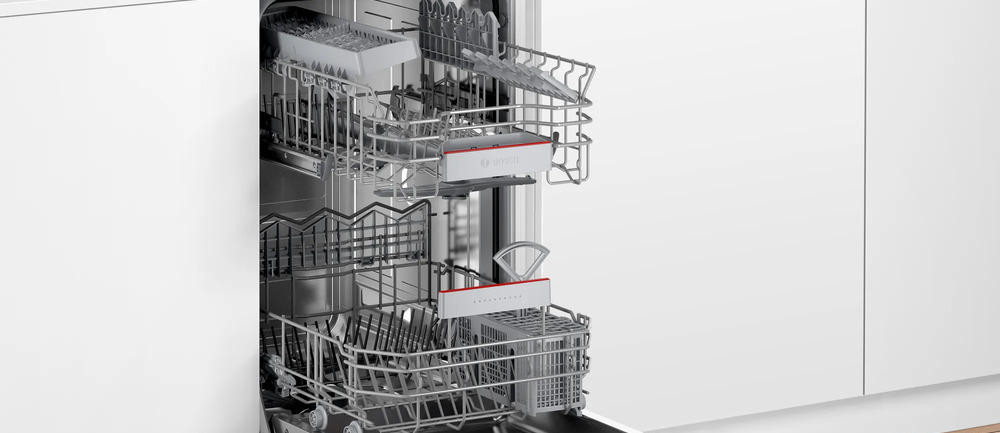 Посудомоечная машина Bosch SPV4HKX53E оснащена Info Light — это красная точка, она обозначает, что идет процесс мытья посуды. Home Connect поможет отслеживать состояние вашего устройства или включить программу прямо со смартфона. Система AquaStop обеспечит надежную защиту от любых протечек.