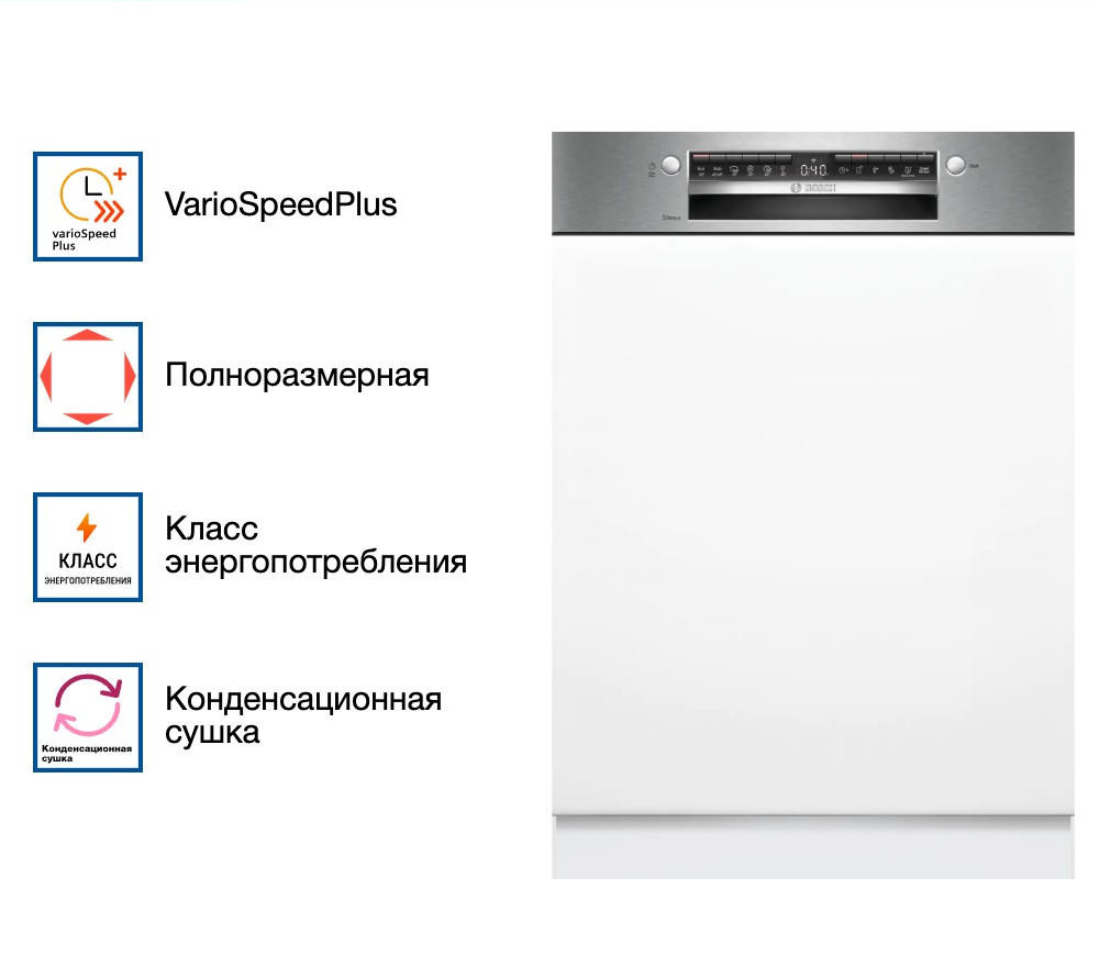 Благодаря инверторному двигателю EcoSilence Drive, машина работает очень тихо, создавая уровень шума всего 48 дБ. Модель оснащена шестью стандартными программами и пятью температурными режимами, включая быструю, экономичную, интенсивную, деликатную и предварительное ополаскивание. Дополнительная функция HygienePlus гарантирует гигиеническую чистоту посуды, а VarioSpeedPlus значительно сокращает время мойки. Посудомоечная машина оснащена удобной открытой панелью управления с сенсорными кнопками и дисплеем.