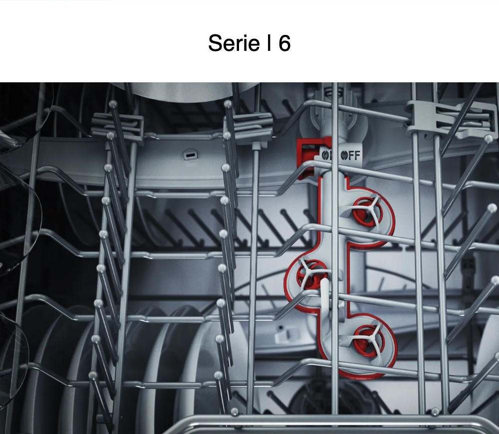 Внутренний резервуар машины выполнен из нержавеющей стали и пластика, что гарантирует его долговечность и легкую очистку. Модель оснащена тремя корзинами, верхняя из которых переставляемая по высоте с системой Rackmatic-3. Это обеспечивает максимальное удобство при загрузке посуды разных размеров.