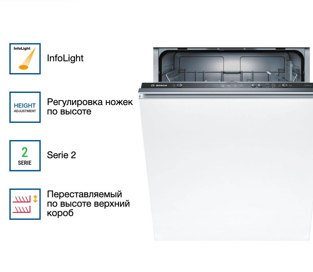 Встраиваемая посудомоечная машина Bosch SMV24AX00E — это превосходный выбор для современного дома. Стильный черный цвет панели управления идеально вписывается в любой интерьер кухни, а компактные размеры позволяют установить технику даже в небольшой нише.