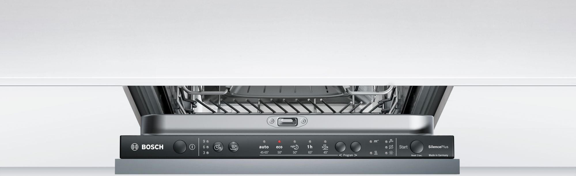Посудомоечная машина Bosch SPV25FX00R — узкая встраиваемая модель с 5 программами мытья и дополнительной функцией «Экстрасушка». При выборе «Быстрого» режима слабозагрязненную посуду можно отмыть всего за полчаса. Теплообменник защищает стекло от температурного шока.