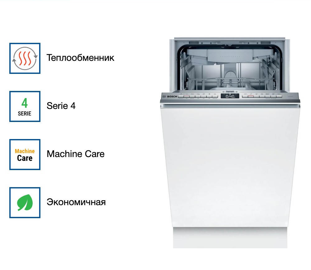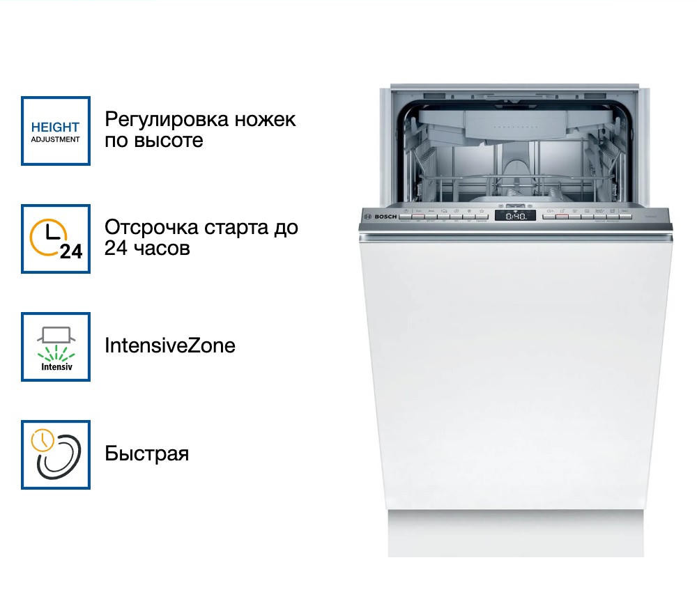 Посудомоечная машина BOSCH SPV4XMX16E — это узкая встраиваемая модель с современным функционалом. Система защиты AquaStop сработает в случае неожиданной протечки и автоматически перекроет подачу воды.