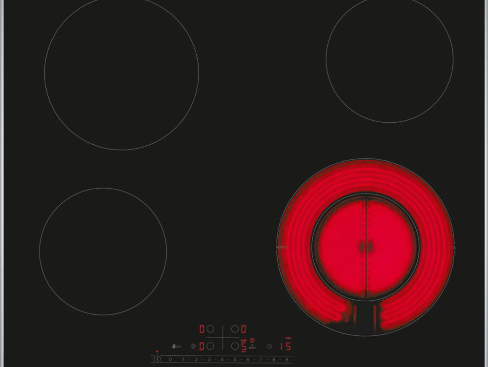 Варочная панель Bosch PKF675FP2E выполнена из стеклокерамики черного цвета, что придает ей элегантный и стильный вид. Металлический профиль по бокам придаёт дополнительную прочность и устойчивость к повреждениям.