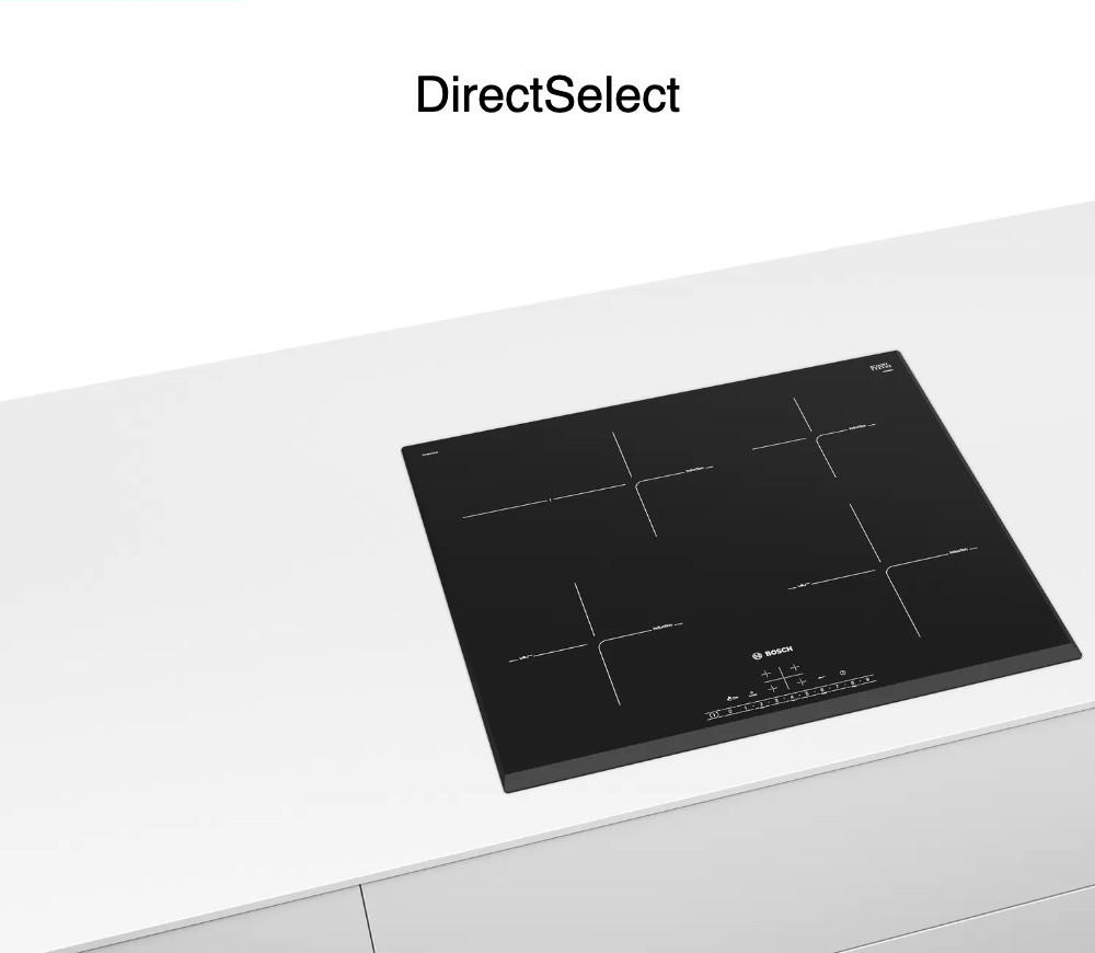 Варочная поверхность Bosch PIF651FC1E — это сочетание высоких технологий, элегантного дизайна и надежности. Произведенная в Евросоюзе, она обладает гарантией в 12 месяцев, что подтверждает ее высокое качество. Элегантная черная стеклокерамическая поверхность с скошенным краем не только выглядит стильно, но и обеспечивает удобство в использовании. Сенсорные элементы управления с системой DirectSelect позволяют легко и быстро выбрать необходимую мощность и время приготовления.