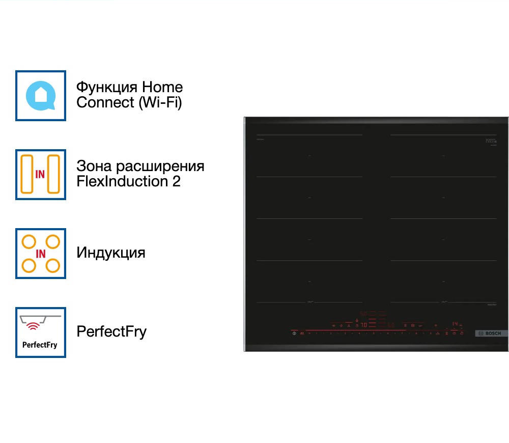 - Поддержка Home Connect позволяет управлять панелью удалённо и использовать умные сценарии готовки.