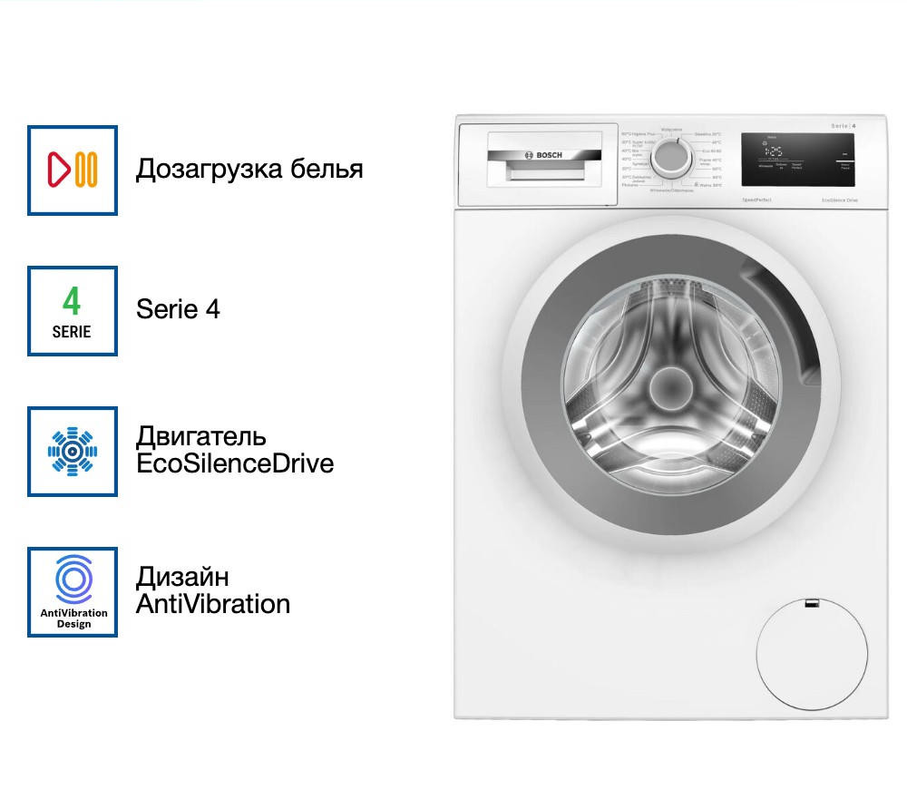 Стиральная машина Bosch WAN2401BPL представляет собой высококачественное устройство, в котором современные технологии сочетаются с простотой и удобством использования. Она оснащена фронтальной загрузкой, что делает ее удобной для размещения в любом помещении, будь то ванная комната или кухня. Максимальная загрузка при стирке составляет 8 кг, что позволяет загружать достаточное количество белья за одну стирку. Максимальная скорость отжима достигает 1200 оборотов в минуту, что обеспечивает эффективное удаление влаги из белья.