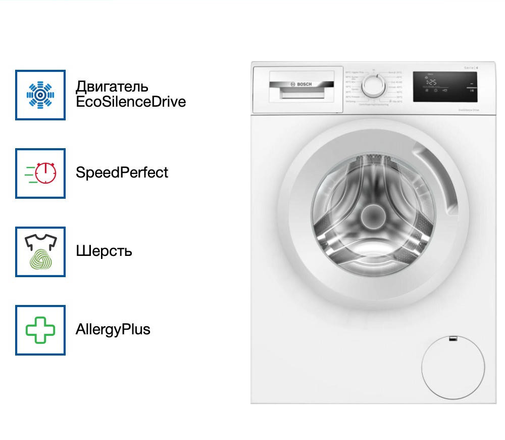 Управление стиральной машиной Бош WAN280L5SN осуществляется с помощью поворотного переключателя, кнопок и электронного дисплея. На нём вы можете видеть ход выполнения программы, время программы и необходимые настройки. Специальный режим «Деликатные ткани» — это программа, которая создана для ухода за вещами, сделанными из особенных тканей. Обычно техника использует температуру, не превышающую 40 градусов, а также максимально бережный отжим (можно запрограммировать работу и без него) и большое количество воды. Это обеспечивают наилучший результат.